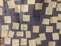 As we return from the break, we began to talk about winter. We started reading books about fall and winter. Then, we drew what we knew about each season and glued them to the appropriate paper. If you are at the school, the large papers are posted in the hall. Feel free to come in, have a look at our work and ask your child to tell you about their favourite activity or weather in fall and/ or winter.